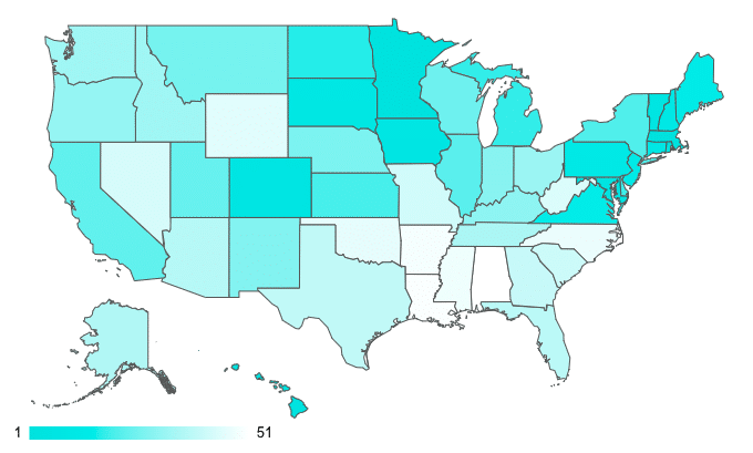 Unlike its healthcare platform, Florida’s education is one of the highest in the country. It has a graduation rate of 90% and ranks #1 in higher education and #26 for Pre-K through Grade 12.
